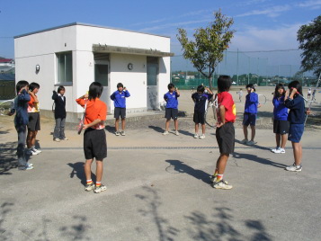 その内、12名がコートにて部員と共に練習しました。見学に来た中学生