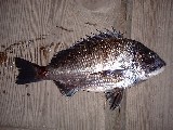 ボケで落とし込み、着底後、もう一度竿一杯持ち上げてボケが先行するように注意しながらゆっくり落とす。 底に着いてしばらくそのままにしていると、「フワ、ワフ」としたアタリが続く。 きっとチヌやっ!と思うが、合わし所が無い為、そのまま我慢する。どれ位の時間が経ったやろ。(5分は経ったハズ?!)「フワ、フワァ」のアタリの中で,節のある押さえ込みのアタリがでた!ココやっ!で合わせを入れると、一気に筏前方へ走り出す。「くっそー、ボラかぁ(ーー;)」 引きの感じは力強いが、頭を振る感触が全く無い。閑人さんに「ボラですわぁ」と言った時に水面下で、魚が見えた。エッ!チヌ?!(・_・?) \(^o^)/ヤッター!チヌやぁ。そーと判れば何が何でも上げやねば・・。 ロープに注意しながらのやり取りは緊張する・・・。(^_^;) で、無事タモに収まったのは40cm。スカリに入れ、仕掛を結びなおす。未だ居るハズや。 |