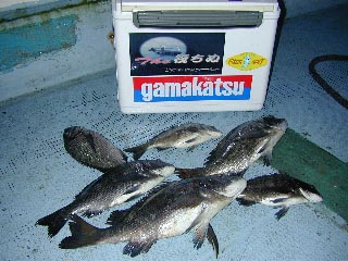 | ↑スカリが真横に・・・潮ぶっ飛び! | ↑釣果 (^^ゞ |