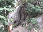 聖観音立像 高さ2.52m。石山磨崖仏群の中で、唯一造られた年代がはっきりしている像です。 浄蓮寺覚順が嘉永元年(1848)に南都唐招提寺の聖観音を模写させ、それをここに 彫り付けたものです。この年の正月25日に作り始め5月27日に開眼したという。 その原本が浄蓮寺に現存し、紙本淡彩聖観音立像一幅も三重県の文化財として指定を 受けている。 |