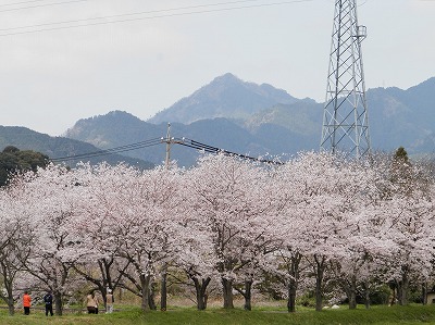 | 錫杖ヶ岳と桜 桜の向こうの山が、登山客に人気の錫杖が岳 |