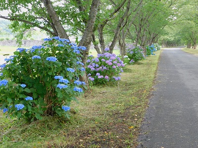 花街道の紫陽花 紫・白・ピンクの紫陽花が植えられています。 |