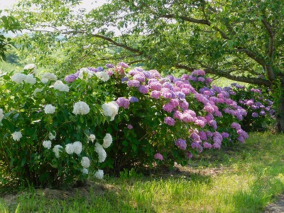 | 花街道の紫陽花 6月には、桜の木の下に紫陽花が咲きます。 |