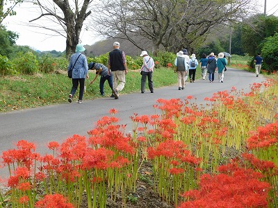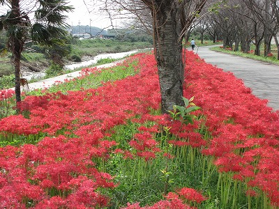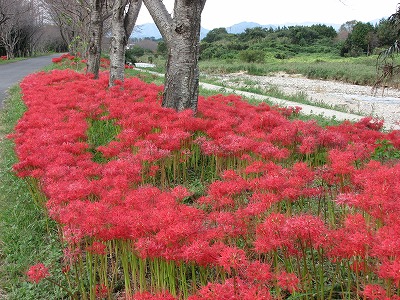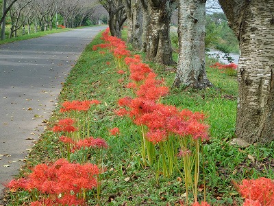 彼岸花 道路の両側に、植えられています。 |