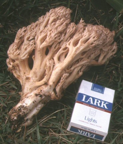 熊野地方では「ネズミノテ」と呼ばれているものです。ホウキタケの仲間は似たものが多く同定がむずかしいものです。本種は柄がしっかり株状になるのと色で判断しています。