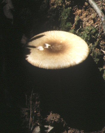 樺色の粉をかぶったテングタケの仲間です。食毒不明とされています。