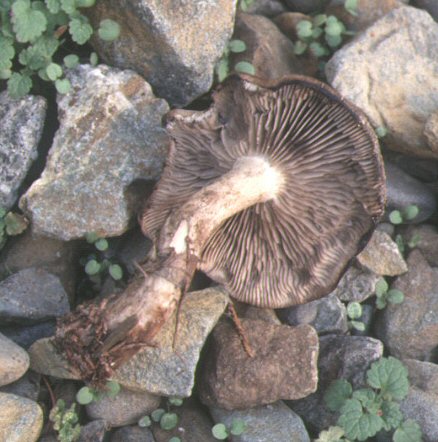 傷つくと黒く変色するのが特徴です。食用菌ですが、発生量は多くありません。