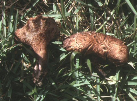 松林に発生します。見つけた時には一瞬コウタケを連想してドキッとしてしまいますが、よく見ると傘の形状からケロウジだとわかります。苦くて食用になりません。