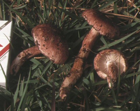 持ち帰る中でかなり汚れてしまっています。生えている時にはもっときれいなワイン色をしていました。苦みがありますが食用です。