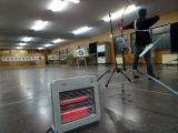屋外は春を思わせるポカポカの絶好のアーチェリー日和でしたが、体育館の会場はさにあらず、底冷えの極寒が待ち受けていました。ただ、昔のBow南都の会場のように、隙間風が吹き荒れていないだけ、恵まれていたと言えましょう。