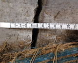 そこで、IUBプロさんがついに立ち上がり、陥没自体は止められないものの、充填剤で亀裂を埋め、歪んだ扉の枠をジャッキアップして、開閉できるようにしました。