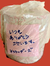 西部運動広場のトイレに、少年野球の「Kスラッガーズ」様から、トイレットペーパーを寄付していただきました。