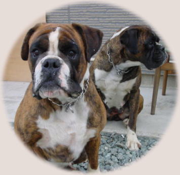 ハーリと会うのも久しぶりです。 パパのアルヒーにとても良く似て 立派なボクサーに成長しています。 |