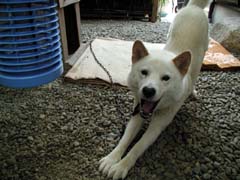 | 毛並みが白いから、「ホワイト」って言うんです。毎日ヒマをしています。 夕方の散歩が大好き。 |