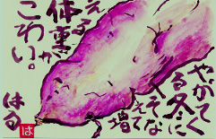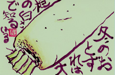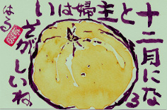 | だいこん 本当においしくなってきましたねえ、大根。夏大根は辛いだけ。まさに冬の大根は何をしたっておいしいもの。 透き通るような大根の白さを見ていると、誰かに『絵手紙』を送りたくなってきます。 |