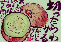 | キーウィ うちの畑で、手入れもせずに、毎年、欠かさず実を付けてくれるキーウィを、採った。キーウィは初霜の降りる少し前に収穫するらしい。 追熟をしなければ食べられないのに、切ってみた。 食べられそうな切り口なんだけど、これがまた酸っぱいのなんのって。まだ、追熟出来てないなあ私って!このキーウィと同じ。 |