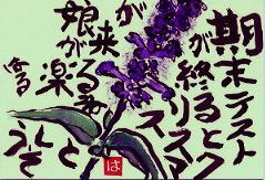 | 紫の花 ついこの間まで半袖のTシャツを着ていたのに、今ではすっかり冬。街ではクリスマスの飾り付けが、あちこちで見られる。 クラブ三昧の中学の娘が、期末テストの日が決まったと言っていた。 テストの苦しさよりその後にやってくる、クリスマスが待ち遠しいようだ。 |