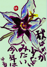 夏に咲く花 夏に咲くはずが、ぼけて咲いていた。今年は、すっきりした青空が少ないように思う。いわし雲や赤とんぼが舞う空が恋しい。乾燥した空気の中、里山を歩いて、素朴な草花を見つけ、スケッチして一日を過ごしたい。曇り空ばっかりの日に描いた一枚。 |