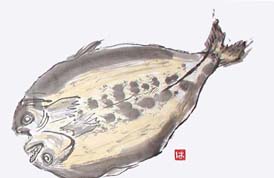 ほっけ 北の海でとれる魚『ほっけ』は、三重に住むわたしには、大人になるまで口にしたことがないものだった。 一度食べたときから、好きになった。 本場青森の魚市場で見た、『ほっけ』は、この辺で見るものの3倍くらいあり、その大きさに驚いた。 |
