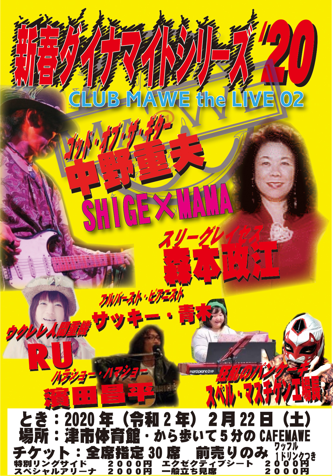 CAFE MAWE SUMMERLIVE 2018 7月14日開催されました。 オープニングはいつものRU。 しかし、そこから始まる 音楽と笑い。 懐かしいサウンド 心を揺さぶる音楽。 そして最高のテクニックやパフォーマンスで 楽しむ最高の「音楽」 なにより、音楽にとってとても大切な 「つながっていく絆」・・ 今回のSUMMERLIVE かなり長い時間になってしまいましたが、 本当に楽しんでいただけたと存じます。 また、延長したのに、お店を空けていていただいた おとなりの和食の「こうち」さん にも大変感謝。 ぜひ、みなさんに「こうち」さんのお食事を食べていただきたくて、 閉店時間を遅らせていただいていました。 本当にありがとうございました。 そして、イベントの美味しいパンをいつもお届けいただく 久居の「メロンズテイル」さんのパンも大人気でした。 また、ぜひ、CafeMAWEのライブを行いたいと思いますので、 ぜひ次回もよろしくお願いいたします。 出演者 Ru(ウクレレ) 戸愚呂兄妹(漫談?) 浜田昌平(ギター) 青木さつき(ピアノ) 森本政江(ヴォーカル) 中野重夫(ギター) Special Guest かわきたさま(ギター) |