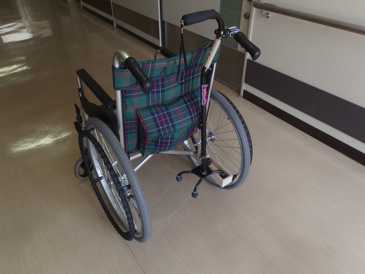 脳血管障害による片麻痺の方から「患側のブレーキに手が届きにくく、ブレーキがかけにくい」ということで取り外しができる車いすブレーキ延長バーを製作しました。