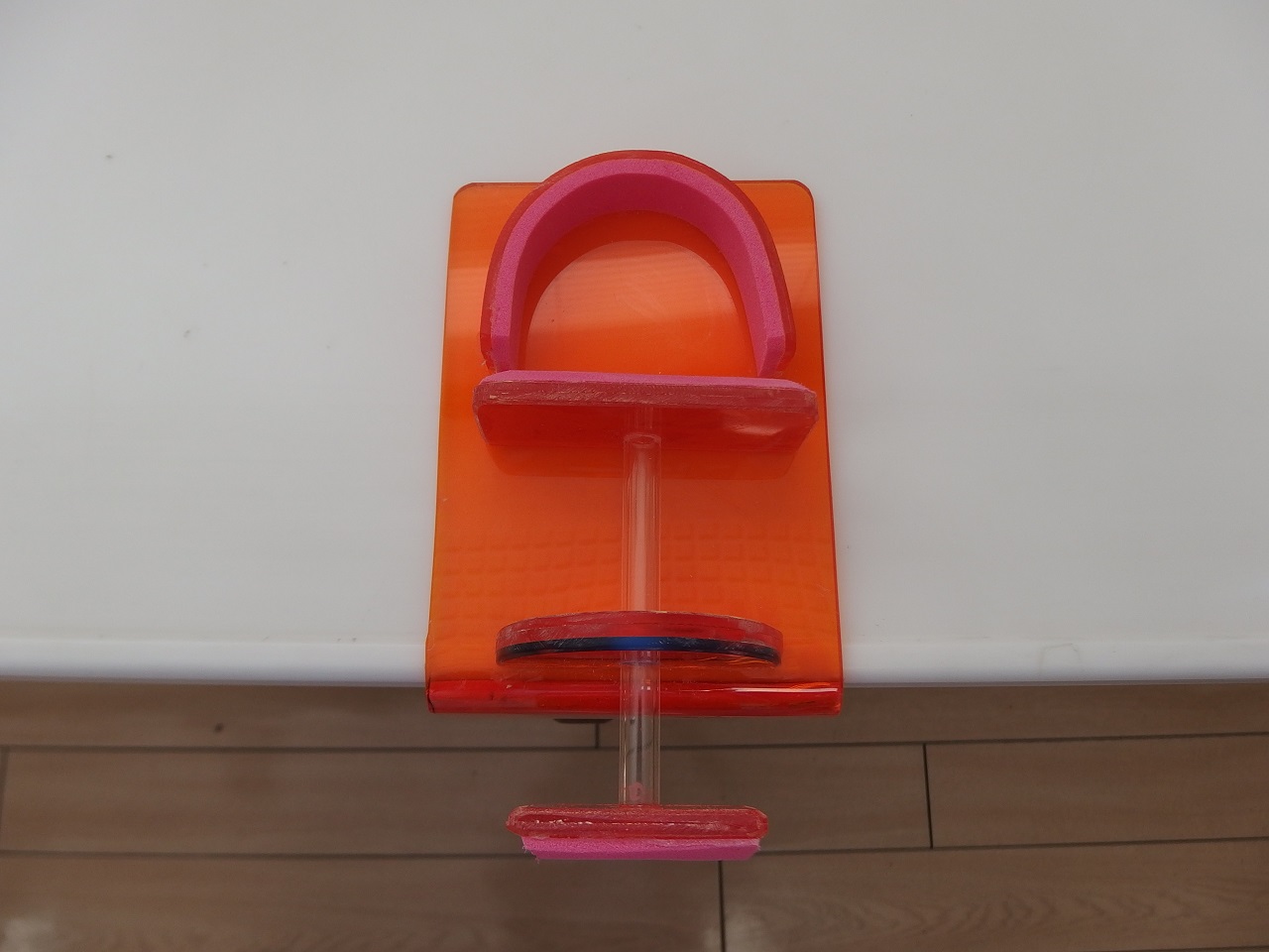 固定されたボトルの蓋を手で開けます。アクリル板で作り以前のものよりコンパクトにしました。