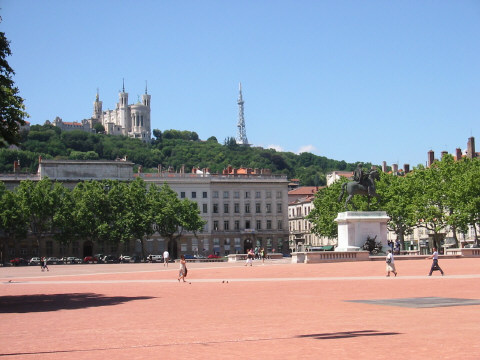 今日は、リヨンの町の中心、ベルクール広場からの写真を添付します。丘の上にある