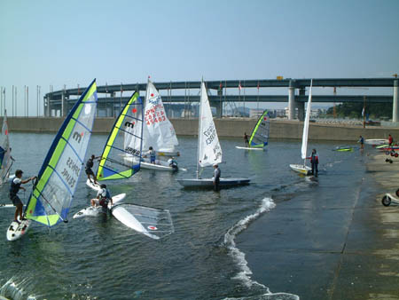技術の難しい条件を生んだ。今日は陸からの強い風が30度以上の巾でシフトを続け、タクティク
