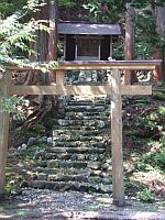 川を挟んで廃村の向かい側に何故がよく管理された小さな神社がありました。 今でも、昔暮らしていた人が管理しているのでしょうか・・・ |