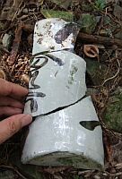 埋もれた集落から、当時の生活品を探してみることにしました。 木の葉をのけると、アルマイト製らしき勺と鍋が出てきました。 |