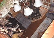 内部は広く、音楽関係、アウトドア関係ありとあらゆる遊びの道具がぎっしりとそろってました。2階からピアノを弾いて弾き語りしている中のmac3さん。 |