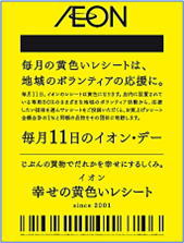 当会は『イオン幸せの黄色いレシートキャンペーン』助成先団体の登録をしています。毎月11日の『イオン・デー』にイオン・マックスバリューで買い物するとイエローレシートが発行されます。
