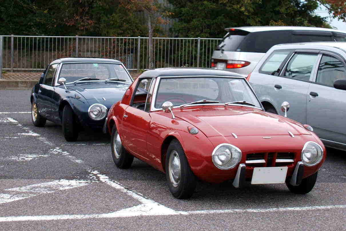 恵那SAで合流した、「ひっぱり屋」さんのヨタハチ(手前)と「wata8」さんのヨタハチ(後方)。