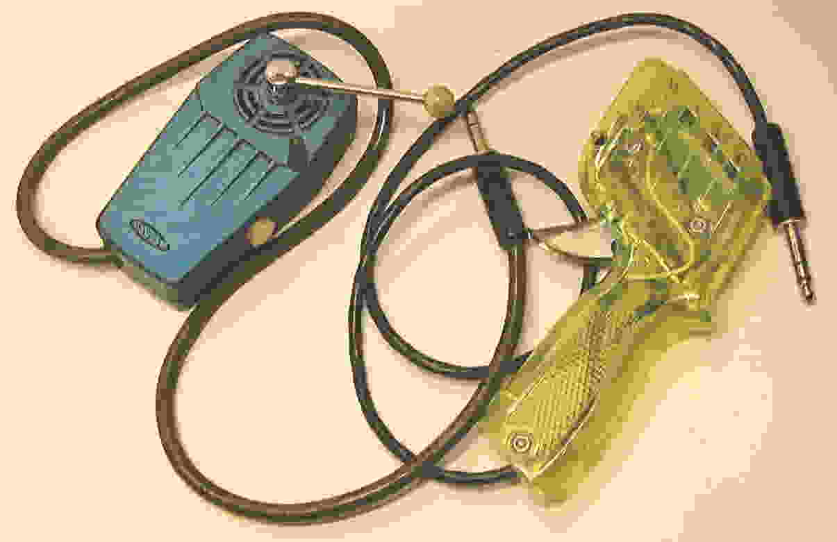 | 当時のボディは、その殆どがワンピースの一体成形で、基本となる成型品はボディ本体及びドライバーがモールドされた上げ底の室内パーツをメインに、ウインド・シールド,ヘッドライトなどのクリア・パーツ,ホイール・キャップ(アルミ製のホイールの中にはめ込む為に、ホイールのディティール再現された物),ミラー,テールランプなどのメッキ・パーツで構成されており、大抵の場合、デカールも用意されていました。 無論、基本的にはプラモデルを走行させているわけで、走行中のクラッシュや転倒,コースからの落下(!)などでボディが損傷する事を想定して、スペア・ボディなども発売されていましたが、現代では、当時のスロット・カー・キット(勿論、未組立,未開封)はとてつもなく高価かつ貴重なシロモノですので、もしも、ビンテージ・スロットでサーキットを走りたいと望む人は、このスペア・ボディや、補充パーツとして販売されていたシャシ・キットなどを組み合わせて作った方が、完品のコンプリート・キットを購入して組み立てるよりも遙かに経済的でしょう。 当然、最近のモデルカー・キットと、さかつうやビーバー・コーポレーションのスロットカー・シャシを組み合わせた物が現在のスロットカー・サーキットの主流ですので、当時のシャシとは走行スピードや車体の安定性等に雲泥の差があり、かつ、ビンテージ・スロットカーは貴重であることもあり、雑多な種類のスロット・カーが走行する状態のサーキットでは、その走る姿を見ることは滅多に出来ませんが、中には、そのような古いキット限定のサーキット・イベントも有るようで、所有している人は意外と多いようです。 ところで肝心のスロットカーのコントロールは、コントローラーと呼ばれる抵抗器を使用して行ないます。 スロットカー自体は直流12Vまでの電流をガイド・ブラシを介してモーターに通電し、走行させているので、その電流を抵抗器で任意の電圧に制御する事によってスロットカーのスピードをコントロールしているわけで、このコントローラーこそがスロットカーのアクセルそのものなのです。 (ステアリングがいらないのは、御存知の通り。) さて、コントローラーには、大別して当時の主流であったレバー・タイプのものと、トリガー・タイプの2種類があるが、現代ではレバー・タイプは稀少品であり、中古品でも結構な価格で売られているので、あえて拘らない限りは新品で購入出来るトリガー・タイプを選ぶ人が圧倒的です。 また、コントローラーには電気抵抗を利用したブレーキ機能を組み込んだ物もあり、これは、簡単な工作によって後付する事も出来るために、多くの人がコントローラー本体にも改造を加えており、改造のためのキットも販売されています。 |