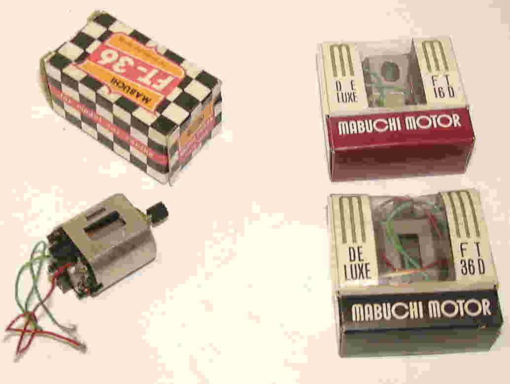 | さて、動力となるモーターは、驚いたことに現在でもマブチ・モーターよりスロット・カー用のモーターが作られています。 現在、入手出来るシャシは、このモーターに対応した取り付け穴が開いているので、簡単に装着が可能であるし、メーカーによっては組み付け済みで販売されているものもあるほどです。 ただ問題なのは、ビンテージ・スロットの場合で、当時のモーターに問題があって走れない場合にはモーターのO/Hや、場合によってはデッド・ストックのモーターを手に入れる必要があるので維持するのも大変です。 勿論、今、入手出来るモーターを取り付ける事も可能ですが、貴重なシャシを改造する事になりかねないし、もしも、ビンテージ・スロットカーのレースに参戦する場合にはレギュレーション違反になる場合もあり余りお奨めできません。 昔は、モーターのコイルを巻き直してパワーアップさせた極悪な物や、負荷が掛かるのを承知のハイ・ギヤードなどが横行していましたが、統一されたルールのない昔ならともかく、現代では大人の遊びとして、ごく一部のマニアだけで楽しんでいる状態で、そのような改造を施されたスロット・カーに出会うことは殆ど無いですが、私個人としてはそのような極悪改造のマシンばかりで競われるレースを一度は見てみたい気がする。(笑) |