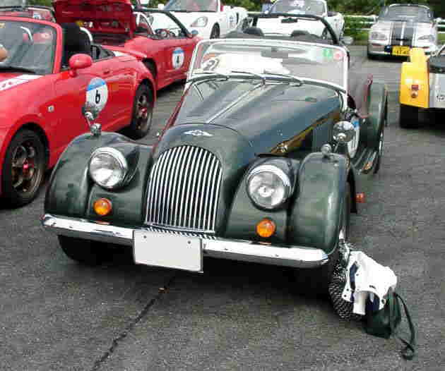 | 壮年のご夫婦がお乗りになっていたモーガン+4。 そりゃあもう格好良いですよ。似合ってますしね。 ニア・セブンの大群の中で唯一孤高の存在です。 |