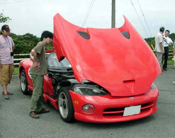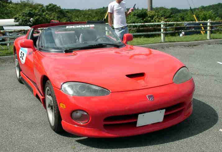 | どんじりに控えるのは、今回、一番のお勧め ダッジバイパーです。 お姿はアチコチで拝見しているものの間近で見たのは今日が始めて。 |