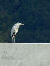 橋を戻りふたたび堤防へ、アオサギが羽を休めています。 |