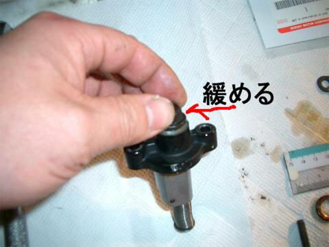 2番側のテンショナアジャスターを入れます。アジャスタボルトを抜いておき爪を押して