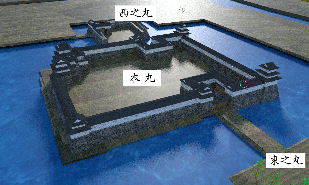 津城の本丸・東之丸・西之丸を再現したCGです。