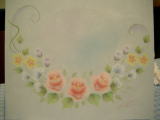 背景にウォッシュフィニッシュで 色を足していきます。 濃さは自分の好みで・・・ってことでしたので 私はかなり薄めに入れました。 |