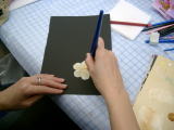 お花の実演です。 一テーブルごとに実演をしてもらい、 その画用紙を見ながら練習します。 パレット上でのブレンドが重要な為、 使用したパレットも横にひっつけておきました。 |