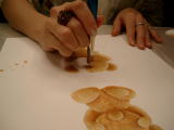 1回目からちゃんと目の詰まったスティップルを心がけないといけない そうです。 先生は2回目をたたくかたたかないで・・・しっかり完成してました。 |