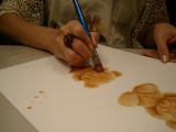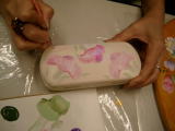スティップルは、パレット上のこの動きが重要だそうです。 程よくブレンド・・・う〜〜〜む(==) |