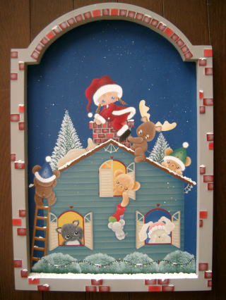 スパッタリングが見えますでしょうか? 最初ね画用紙の端に白の絵の具が飛んじゃったんです(><) でも先生が・・ 「クリスマスらしくていいじゃなぁ〜いスパッタリングしちゃおう♪」って ファンブラシで全体的に雪を降らせてくれました\(^O^)/、 |