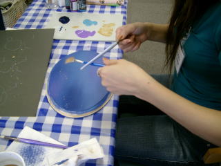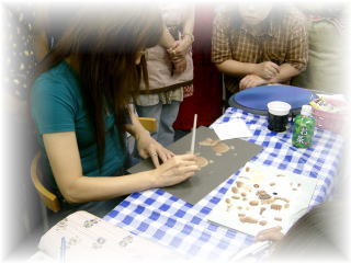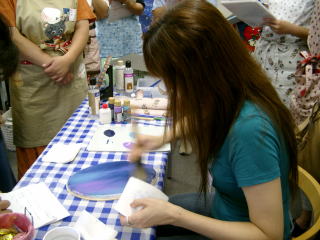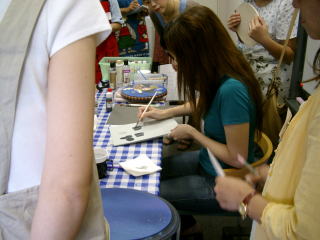 さぁ〜いよいよダブルロードの説明です。 やっぱり本の説明だけではパレット上のグラデーション がよく分からない人が多かったようです。 絵の具をどんどん筆に付けていくことにも驚かれて ました。 |