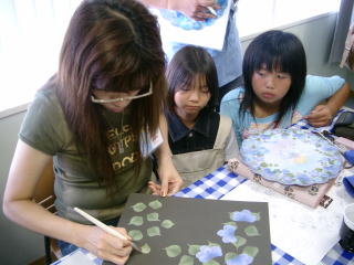 お花の説明は3回に分けてして頂きました。 オコチャマ軍団は一番良く見える場所で 目を皿のようにしてじぃ〜っと拝見させてもらいました |