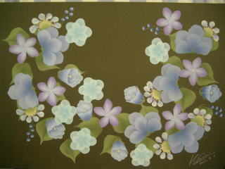 今日はお花盛りだくさんの「ブルーエンジェル」です。↓先生の作品です。