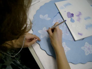 今回の作品はすごく大きなものなので ここで描こうということではなく、 しっかりとお花の練習をして行って下さいねぇ〜 と・・説明されている先生・・・ |