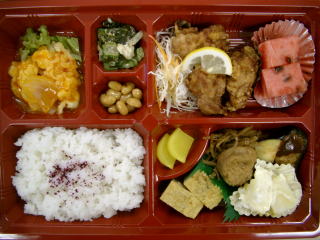 午前中に2種類のお花の練習をして・・ランチタイム! 去年のアンケートで希望が多かったので 今年からお弁当付きセミナーになりました。 1日目のメインはから揚げです♪ 津セミナーのためだけにお店を開けてらって作っていただきました |